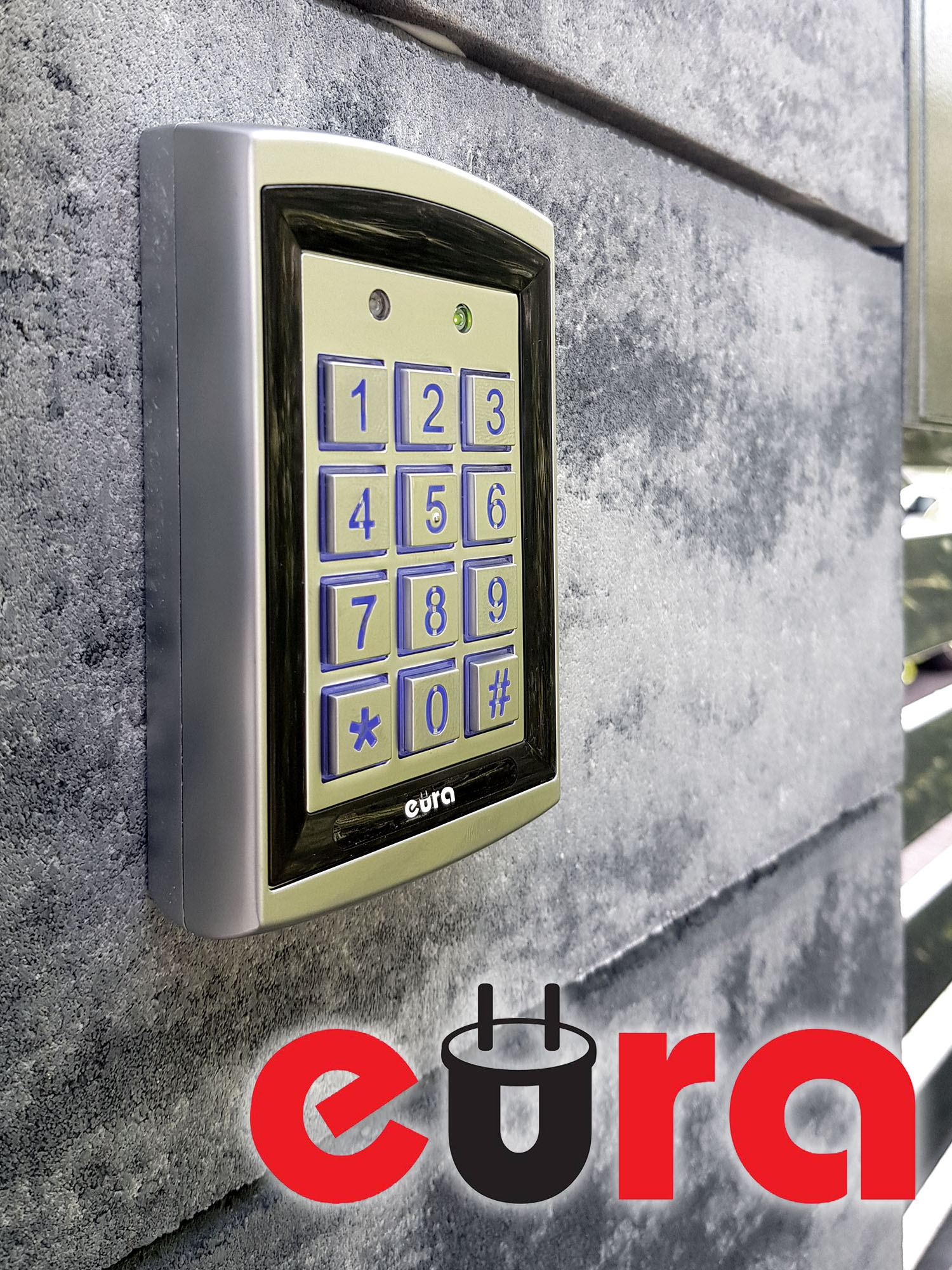 - współczesny domofon z funkcjonalnością otwierania za pomocą kodu lub karty